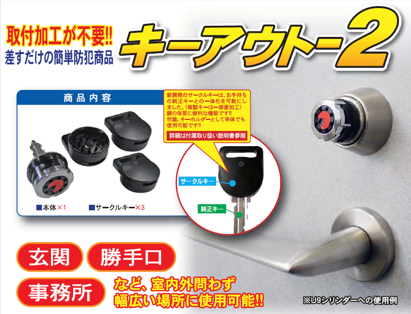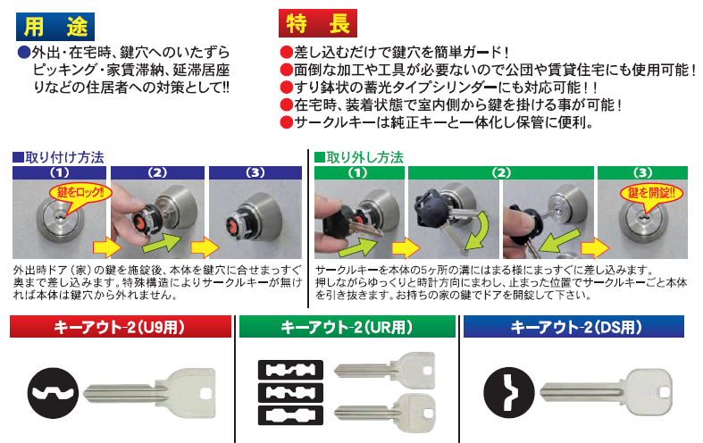 ワンタッチで鍵穴を隠す!様々なタイプの錠前に対応!